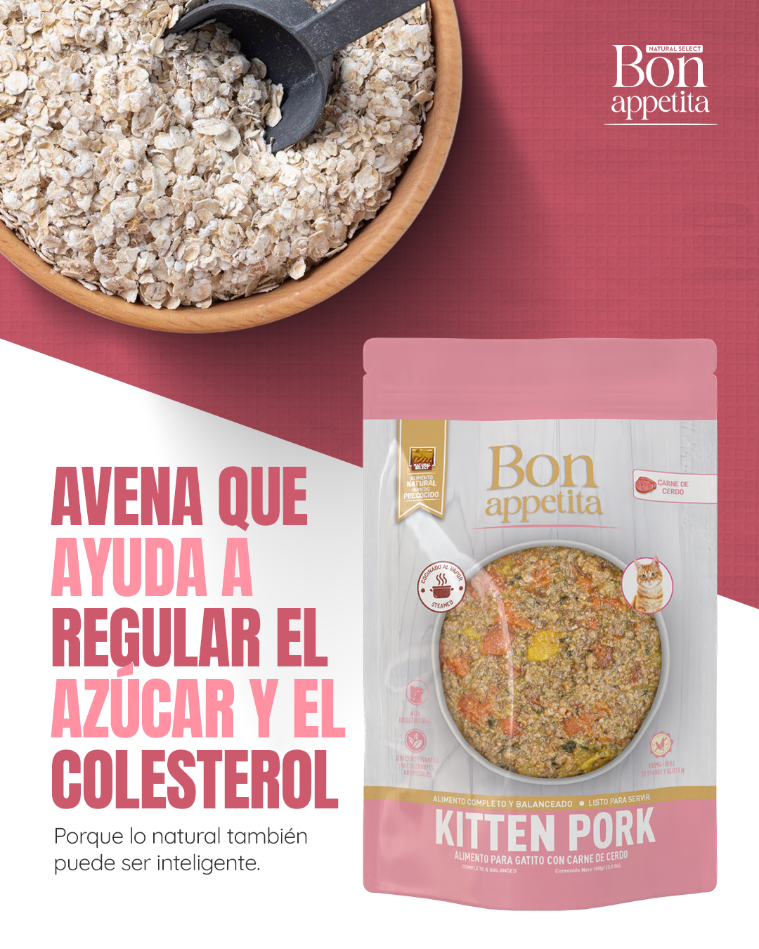 En el plato de tu consentido encontrarás avena que reduce el nivel de colesterol y azúcar en la sangre. También evita que el intestino absorba sustancias que provocan enfermedades cardiacas, colesterol alto y diabetes.