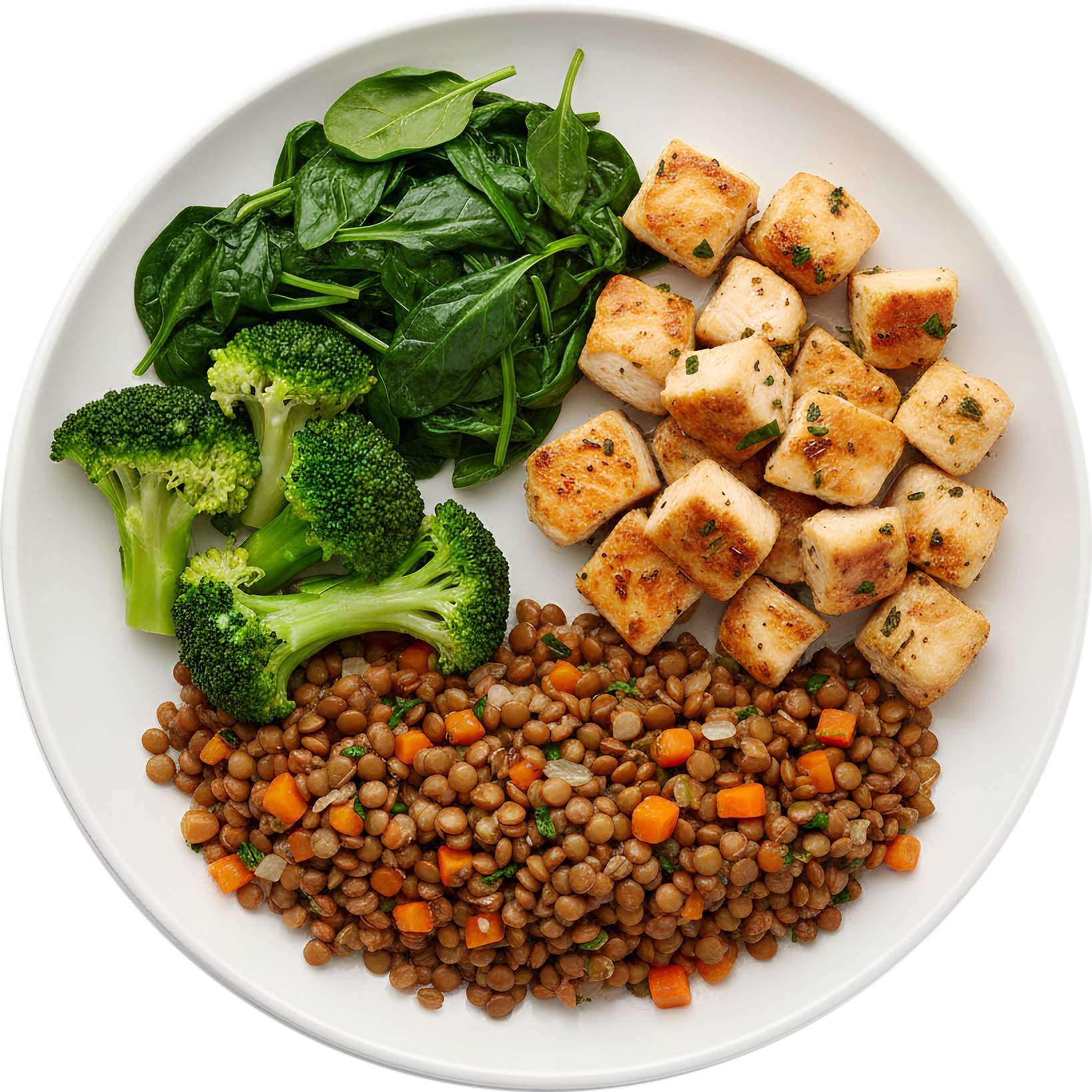 Nuestra receta contiene proteína animal como la carne magra de res, pollo, cordero y pavo sin piel que contribuyen a la construcción de tejidos y músculos. Además de huevos, hígado y vísceras que aumentan la masa muscular. Por otra parte, añadimos lentejas como proteína vegetal que aportan un alto valor nutritivo soportando el sistema cardiovascular y reduciendo el colesterol.